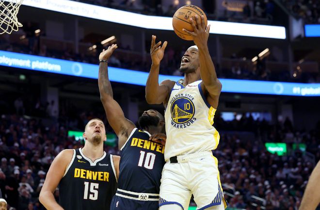 勇士有這么強么?這里要從庫明加說起。在此前兩個賽季,庫明加場均15.5分4.7籃板2.2助攻,他和科爾最大的矛盾在于,科爾希望他能夠融入勇士體系,做一些臟活累活,多一些傳球,少一些不合理的單打。沒人否認(rèn)庫明加的天賦,上賽季季后賽打森林狼,當(dāng)庫里倒下后,庫明加四場比賽場均24.3分,比巴特勒表現(xiàn)要好,幾乎成為勇士最后的慰藉。但新賽季開打后,庫明加徹底變了,完全不認(rèn)識了!和湖人一戰(zhàn),庫明加11中6拿到17分9籃板6助攻;打掘金,庫明加還是11中6,拿到14分5籃板3助攻,場均16分7籃板5助攻的水準(zhǔn)。