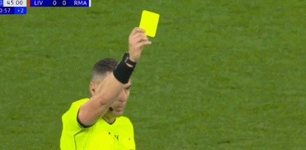 第45+1分鐘,赫伊森搶球放倒?;倏?,得到一張黃牌